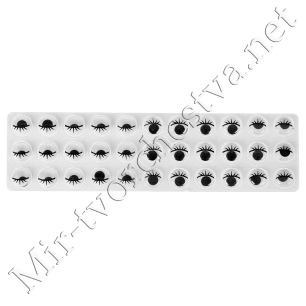 Набор глазок с ресничками, 30шт., d:1,5см, цвет Микс