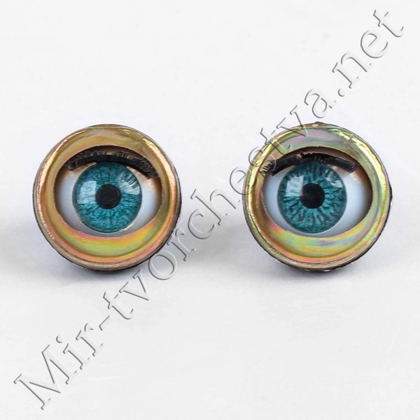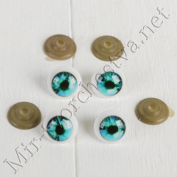Глаза винтовые с заглушками, круглые, пара, d:2,6см, цвет Голубой