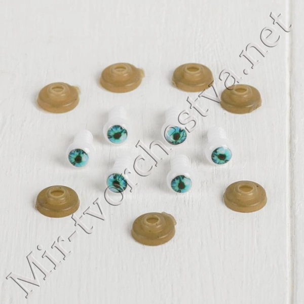 Набор глазок винтовых с заглушками, круглые, 10шт., d:0,8см, цвет Голубой