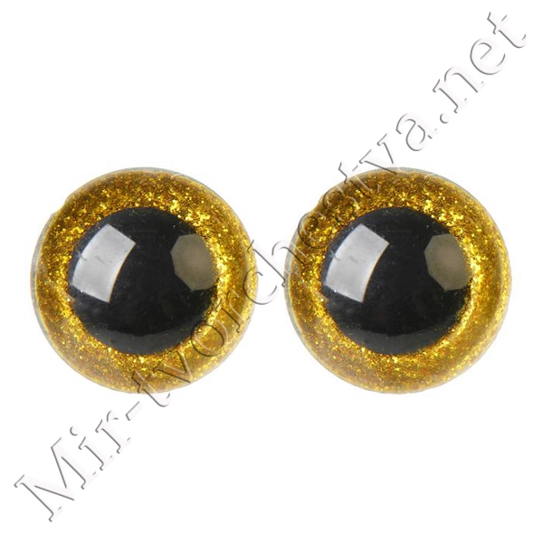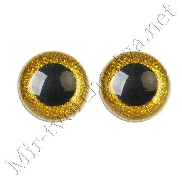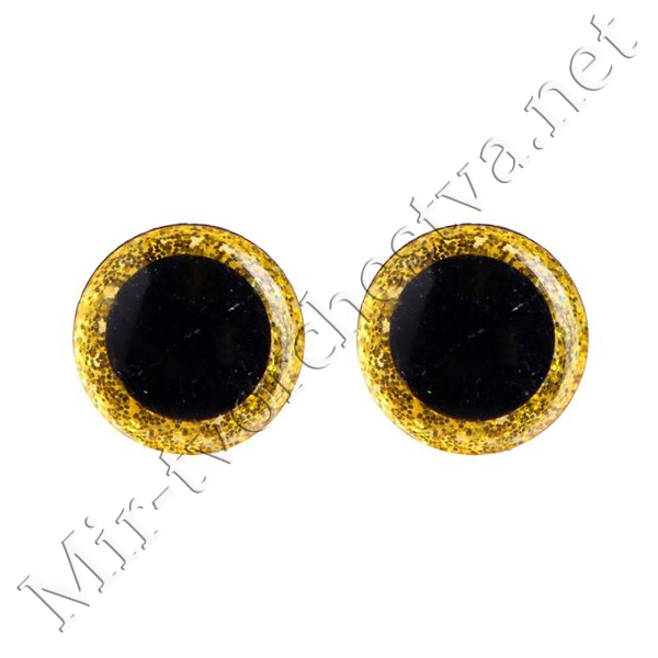 Глаза винтовые с заглушками, круглые, «Блёстки» пара, d:3,0см, цвет Жёлтый
