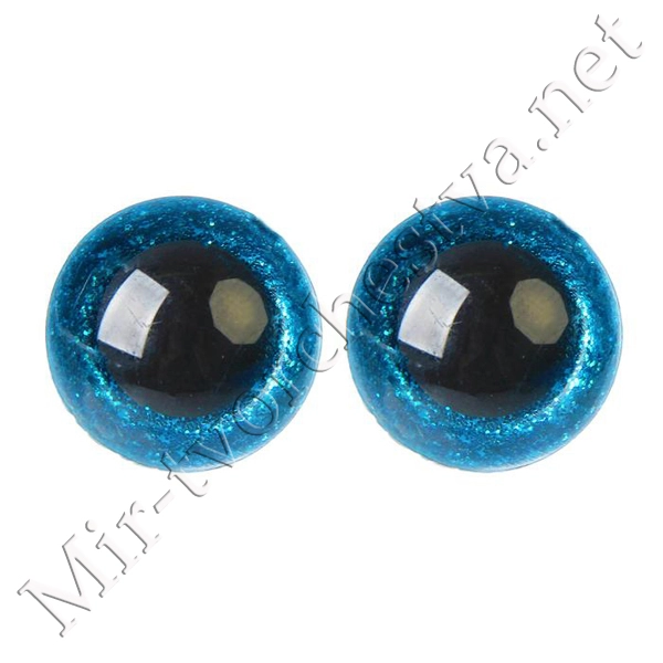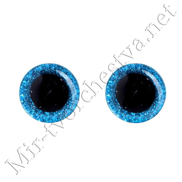Глаза винтовые с заглушками, круглые, «Блёстки» пара, d:2,0см, цвет Голубой
