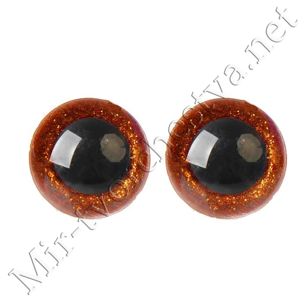 Глаза винтовые с заглушками, круглые, «Блёстки» пара, d:2,0см, цвет Коричневый