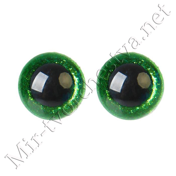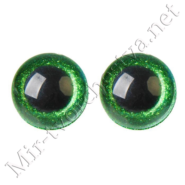 Глаза винтовые с заглушками, круглые, «Блёстки» пара, d:2,8см, цвет Зелёный