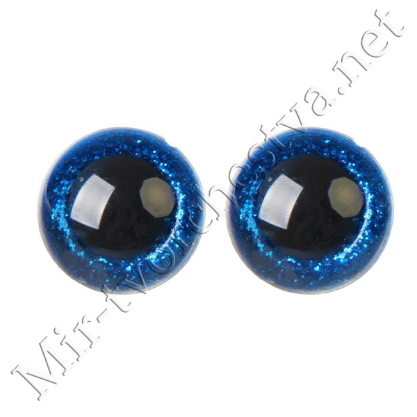 Глаза винтовые с заглушками, круглые, «Блёстки» пара, d:2,2см, цвет Синий