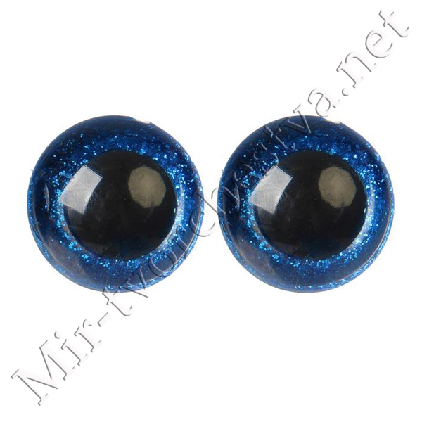 Глаза винтовые с заглушками, круглые, «Блёстки» пара, d:2,8см, цвет Синий