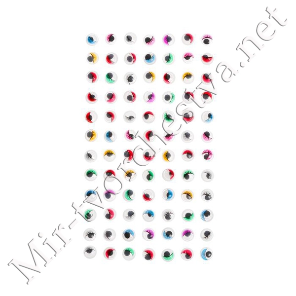 Набор глазок с ресничками на клеевой основе, 84шт., d:0,8см, цвет Микс