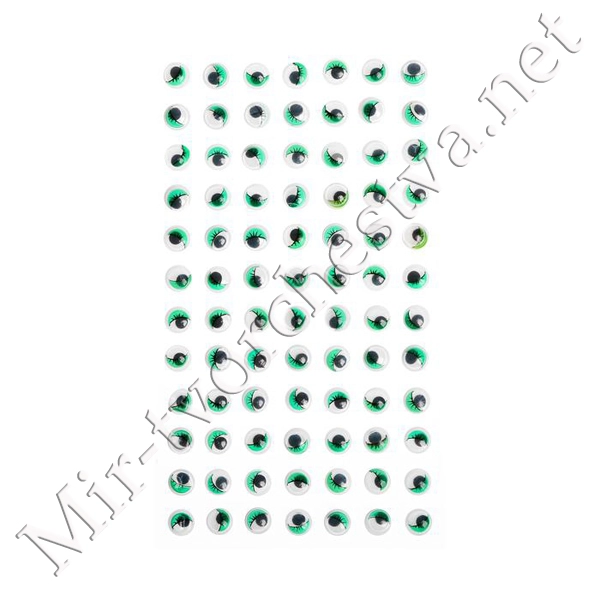 Набор глазок с ресничками на клеевой основе, 84шт., d:0,8см, цвет Зелёный