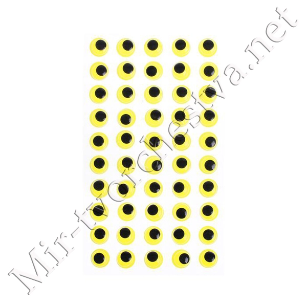 Набор глазок на клеевой основе, 60шт., d:0,8см, цвет Жёлтый
