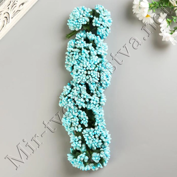 Тычинки для искусственных цветов "Капельки глянец голубое озеро" (набор 300шт.) длина 6см