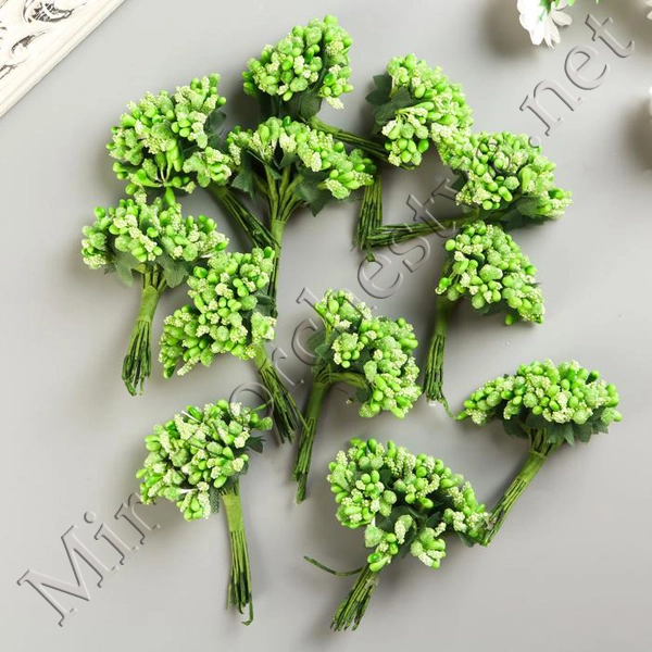 Тычинки для искусственных цветов "Капельки глянец салат" (набор 300шт.) длина 6см
