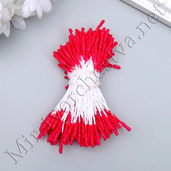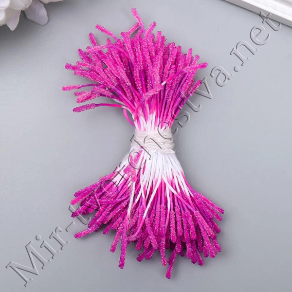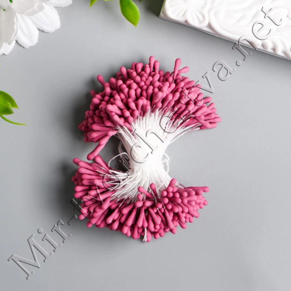 Тычинки для искусственных цветов "Капельки глянец фуксия" (набор 300шт.) длина 6см