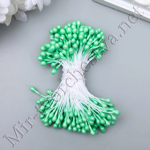 Тычинки для искусственных цветов "Капельки глянец салат" (набор 300шт.) длина 6см
