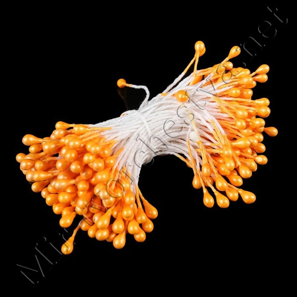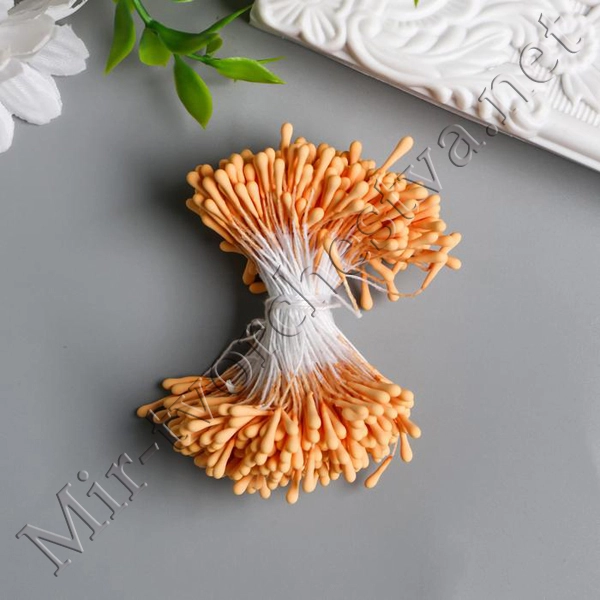 Тычинки для искусственных цветов "Капельки светло-оранжевые" (набор 130шт.) длина 6см