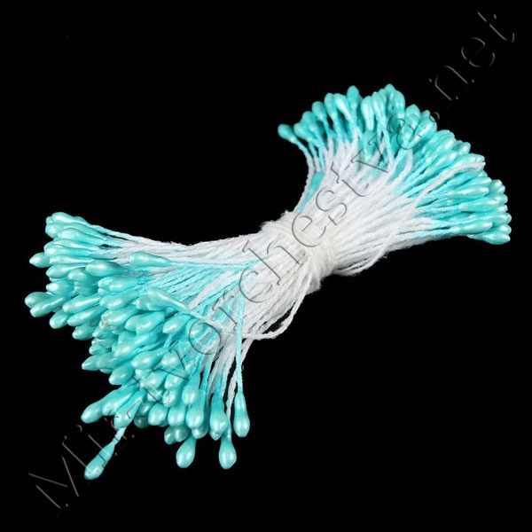 Тычинки для искусственных цветов "Капельки матовые Тиффани голубой" d=1.5мм (набор 400шт.) длина 6см