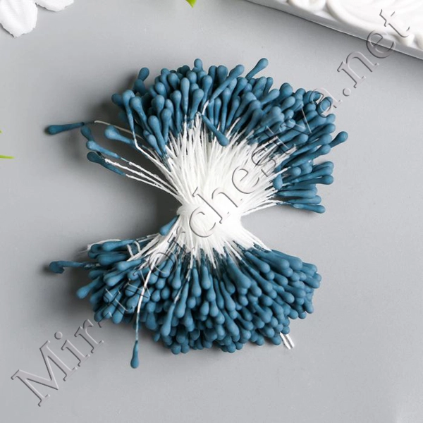 Тычинки для искусственных цветов "Капельки матовые синие" d=1.5мм (набор 400шт.) длина 6см