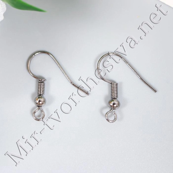 Швензы-крючки с бусиной, (набор 5 пар), цвет Серебро