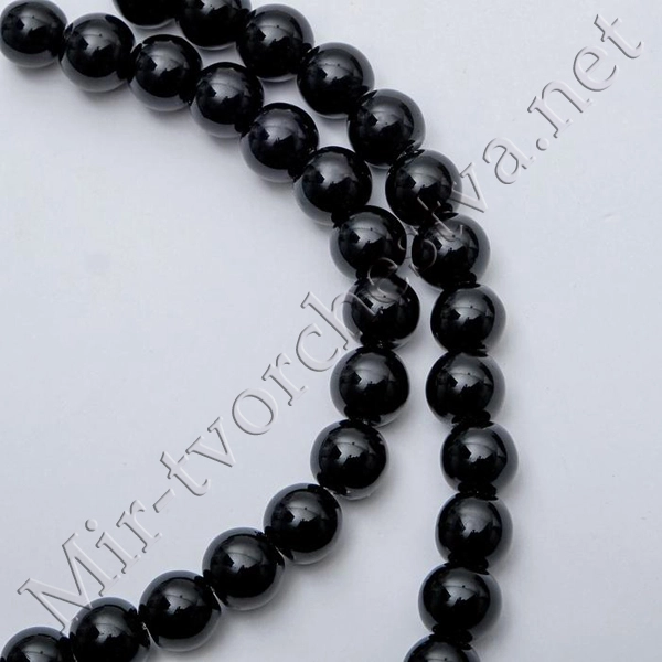 Бусины на нити шар №8 "Агат черный" (50 бусины)