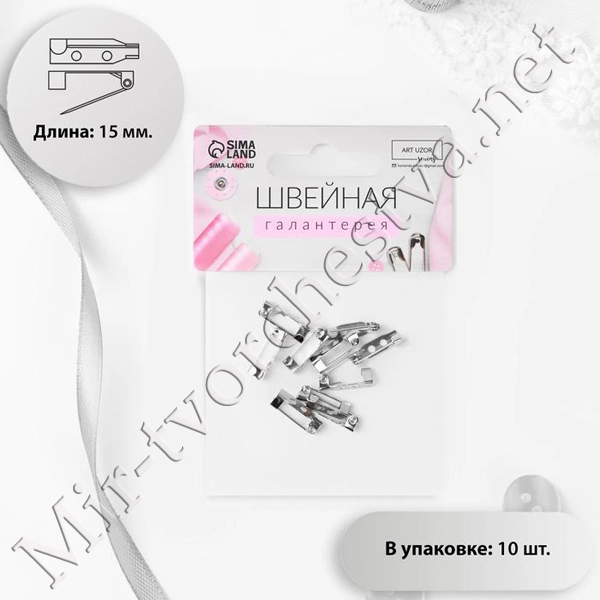 Основа для броши, 15мм, 2 отверстия, 10шт., цвет Серебряный