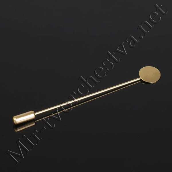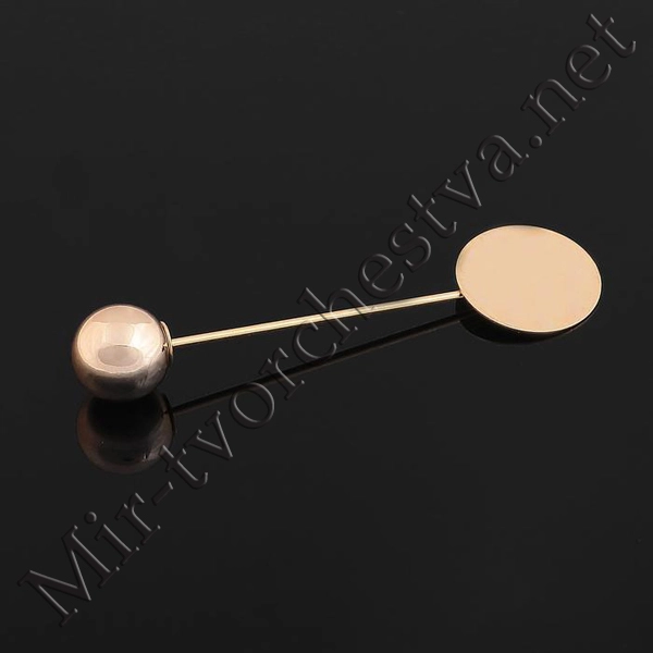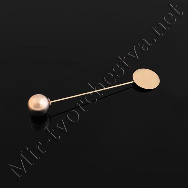 Основа "Брошь-игла" с шариком d=1см, L=5см, площадка 1.5см, цвет Золото