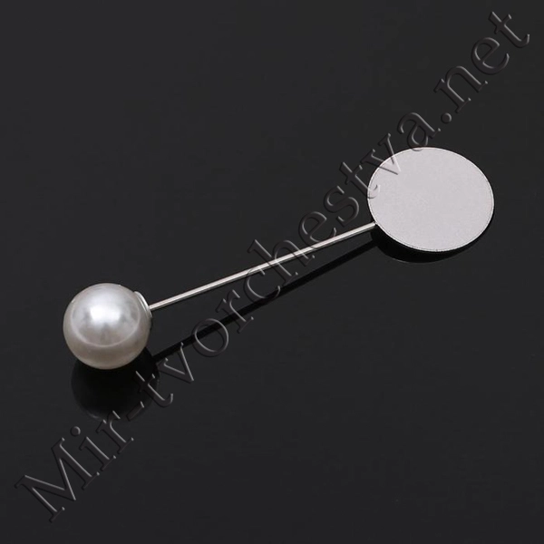 Основа "Брошь-игла" с бусиной d=1см (набор 5шт.), L=5см, площадка 1.5см, цвет Серебро
