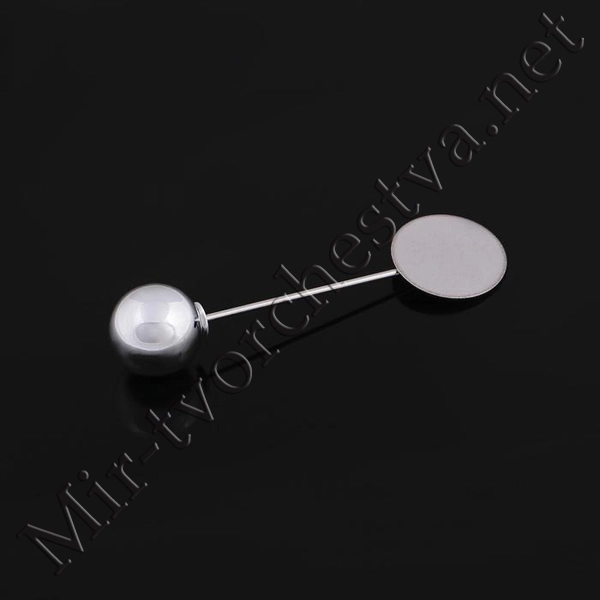 Основа "Брошь-игла" с шариком d=1см (набор 5шт.), L=7 см, площадка 1.5см, цвет Серебро