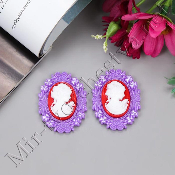 Набор основа для камей "Бант" 3.8x2.7см + камеи "Дама" набор 4шт. 2.5x1.8см
