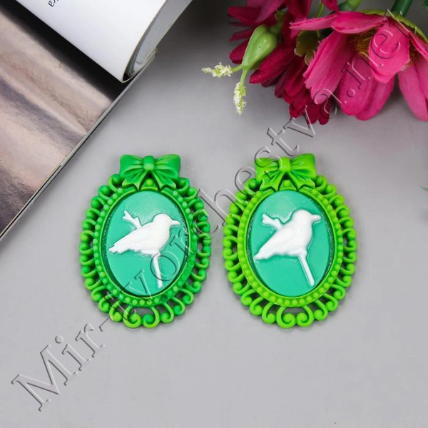 Набор основа для камей "С бантом" 3.8x2.7см + камеи "Птица" набор 4шт. 2,3x1,6см