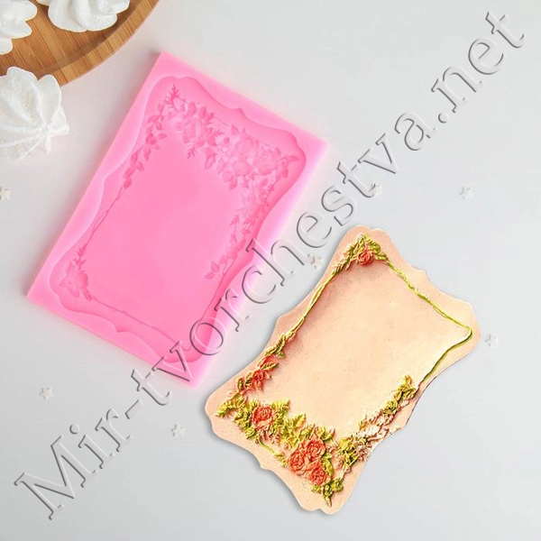 Молд силиконовый, 15,5x10,5 см "Рамка с розами", цвет розовый