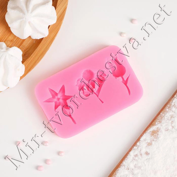 Молд силиконовый, 10х6,3х1 см "Три цветка"