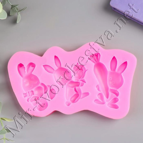 Молд силиконовый, "Зайчики пасхальные" 3 предмета 1х15,5х8 см 5180338