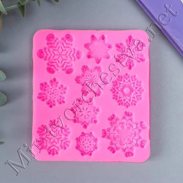 Молд силиконовый, "Снежинки" 10 предметов 9х8х0,8 см 6707450
