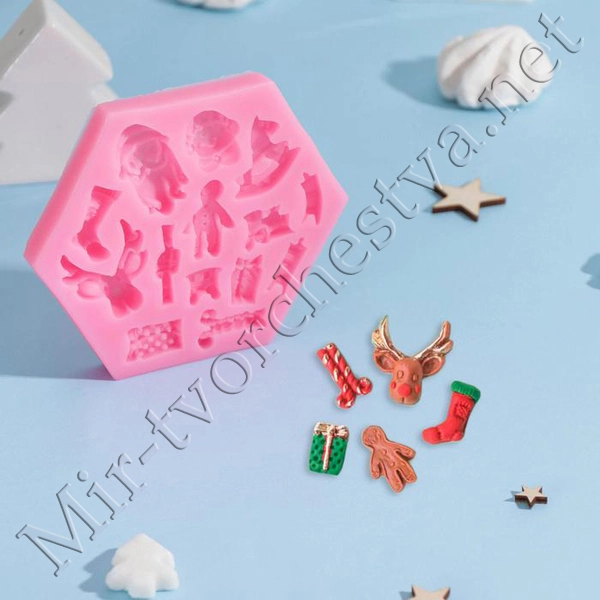 Молд силиконовый, «Рождественский набор», 12,2x11x1,5 см, цвет МИКС