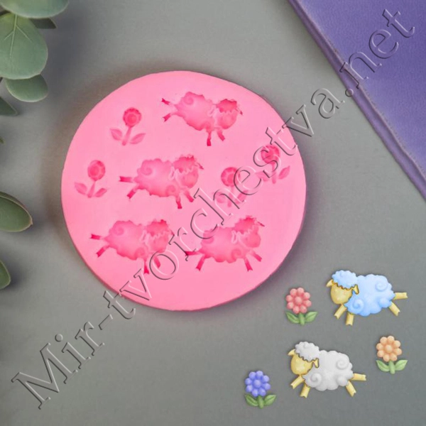 Молд силиконовый, "Барашки и цветочки" 8 предметов 1х7,5х7,5 см 5180301