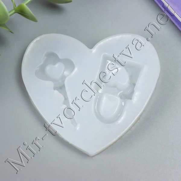 Молд силиконовый, "Ключик и замочек с сердцами" 2 предмета 6,5х6х1 см 6707476