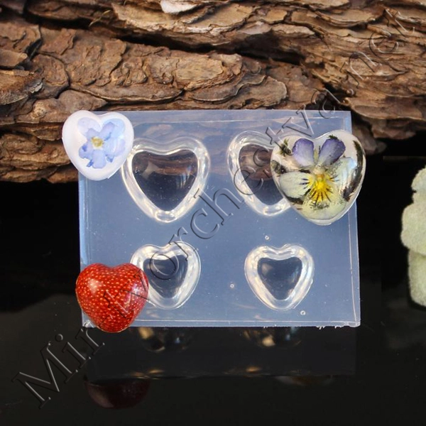 Молд силиконовый, «4 сердца» 16 мм, 12 мм