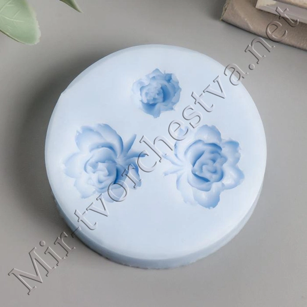 Молд силиконовый, 5 см "Три малых розы" цвет розовый 861086