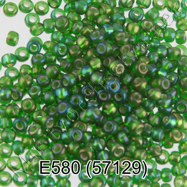 Бисер, 57129 (Е580), Зеленый, прозр. радуж.